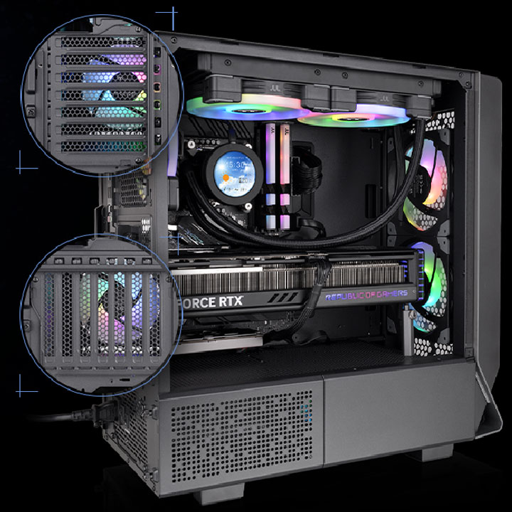 具有优异的散热方案支持,玩家可以选择在机箱前方安装置360mm水冷排、或是在机箱上方安装至280mm水冷排。
