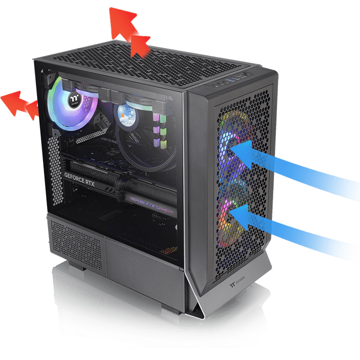 劲透Ceres 300 TG ARGB中直立式机箱专为出色的气流表现而打造,面板开孔率超过55%,提供大量的气流。
